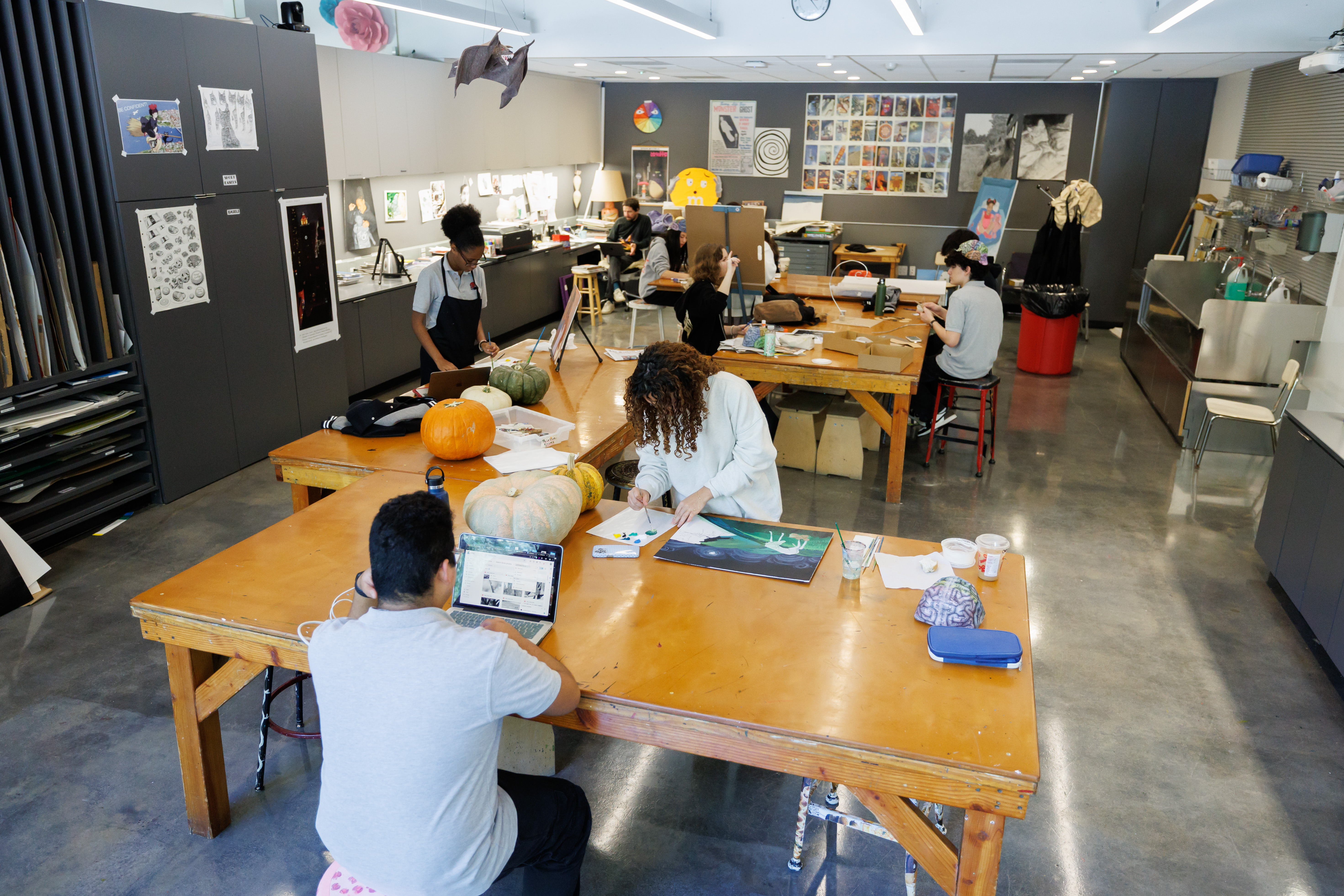 The Ellen Mahoney Visual Arts Studios: Middle and Upper School visual arts students take classes in three adjacent studios for darkroom and digital photography, drawing and painting, and three-dimensional art.
